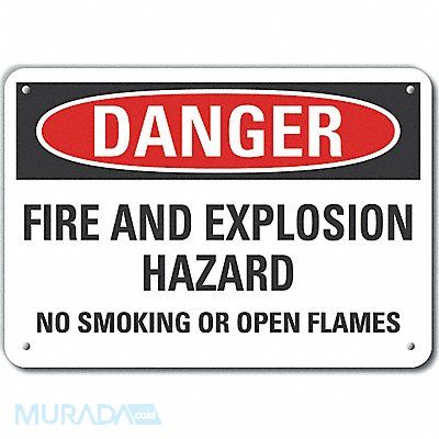 Danger Sign Horizontal Rectangle Number of Printed Sides 1 English Sign Format Traditional OSHA Sign Legend Fire And Explosion Hazard No Smoking Or Open Flames Sign Legend Background Color White Sign Legend Style Text