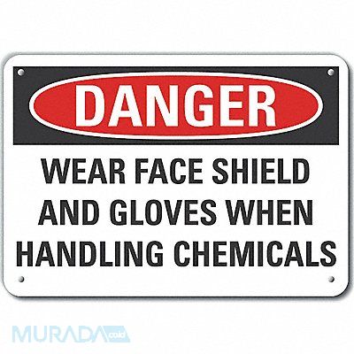 Danger Sign Horizontal Rectangle Number of Printed Sides 1 English Sign Format Traditional OSHA Sign Legend Wear Face Shield And Gloves When Handling Chemicals Sign Legend Background Color White Sign Legend Style Text