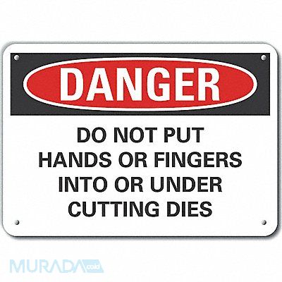 Plastic Pinch Point Danger Sign Vertical Rectangle Number of Printed Sides 1 English Sign Format Traditional OSHA Sign Legend Do Not Put Hands Or Fingers Into Or Under Cutting Dies Sign Legend Background Color White Sign Legend Style Text