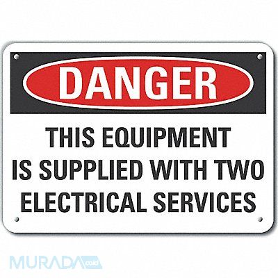 Plastic Electrical Hazard Danger Sign Vertical Rectangle Number of Printed Sides 1 English Sign Format Traditional OSHA Sign Legend This Equipment Is Supplied With Two Electrical Services Sign Legend Background Color White Sign Legend Style Text