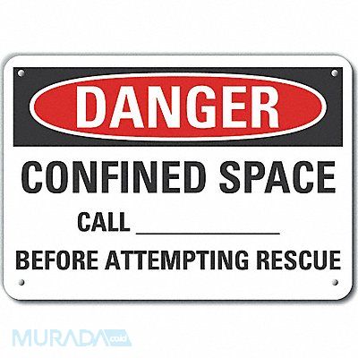 Danger Sign Vertical Rectangle Number of Printed Sides 1 English Sign Format Traditional OSHA Sign Legend Confined Space Call_____ Before Attempting Rescue Sign Legend Background Color White Sign Legend Style Text