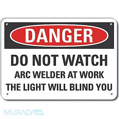 Decal Plastic Danger Do Not Watch Arc 14 x 10 in Horizontal Rectangle Number of Printed Sides 1 English Sign Format Traditional OSHA Sign Legend Do Not Watch Arc Welder At Work The Light Will Blind You Sign Legend Background Color White Sign Legend Style Text