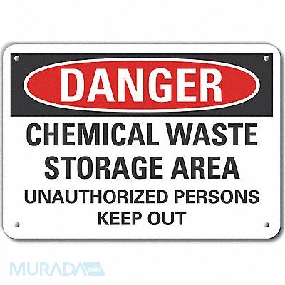 Plastic Chemicals Danger Sign Vertical Rectangle Number of Printed Sides 1 English Sign Format Traditional OSHA Sign Legend Chemical Waste Storage Area Unauthorized Persons Keep Out Sign Legend Background Color White Sign Legend Style Text