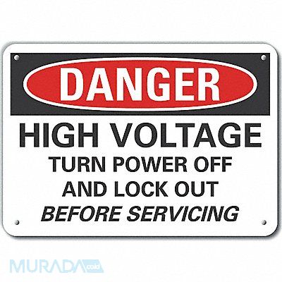 Decal Danger High Voltage Plastic 10 x 7 in Vertical Rectangle Number of Printed Sides 1 English Sign Format Traditional OSHA Sign Legend High Voltage Turn Power Off And Lock Out Before Servicing Sign Legend Background Color White Sign Legend Style Text