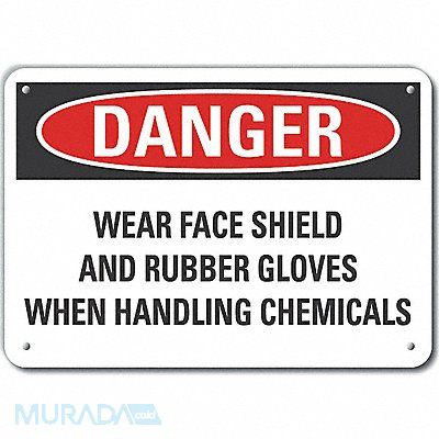 Plastic Eye Hand Danger Sign Vertical Rectangle Number of Printed Sides 1 English Sign Format Traditional OSHA Sign Legend Wear Face Shield And Rubber Gloves When Handling Chemicals Sign Legend Background Color White Sign Legend Style Text