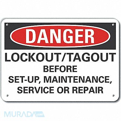Plastic Lockout Tagout Danger Sign Horizontal Rectangle Number of Printed Sides 1 English Sign Format Traditional OSHA Sign Legend Lockout/Tagout Before Set-Up Maintenance Service Or Repair Sign Legend Background Color White Sign Legend Style Text