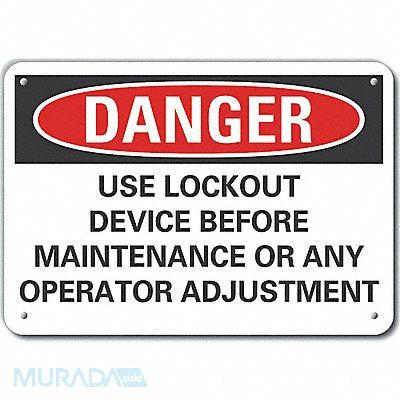 Danger Sign Horizontal Rectangle Number of Printed Sides 1 English Sign Format Traditional OSHA Sign Legend Use Lockout Device Before Maintenance Or Any Operator Adjustment Sign Legend Background Color White Sign Legend Style Text