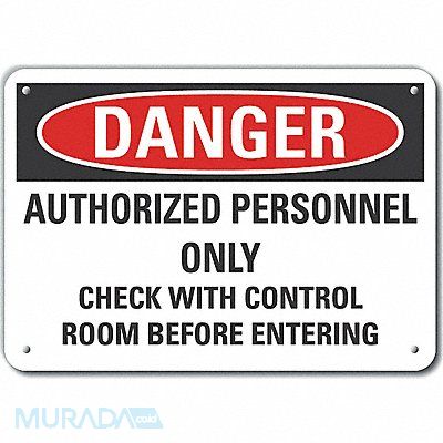 Danger Sign Horizontal Rectangle Number of Printed Sides 1 English Sign Format Traditional OSHA Sign Legend Authorized Personnel Only Check With Control Room Before Entering Sign Legend Background Color White Sign Legend Style Text