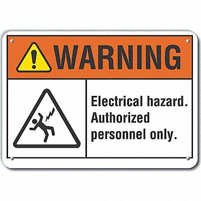 Plastic Electrical Hazard Warning Sign Horizontal Rectangle Number of Printed Sides 1 English Sign Format ANSI/OSHA Format Sign Legend Electrical Hazard. Authorized Personnel Only. Sign Legend Background Color White Sign Legend Style Symbol and Text