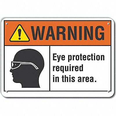 Plastic Eye Warning Sign Horizontal Rectangle Number of Printed Sides 1 English Sign Format ANSI/OSHA Format Sign Legend Eye Protection Required In This Area. Sign Legend Background Color White Sign Legend Style Symbol and Text
