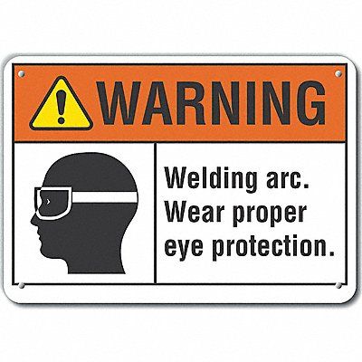 Danger Sign Vertical Rectangle Number of Printed Sides 1 English Sign Format ANSI/OSHA Format Sign Legend Welding Arc. Wear Proper Eye Protection. Sign Legend Background Color White Sign Legend Style Symbol and Text