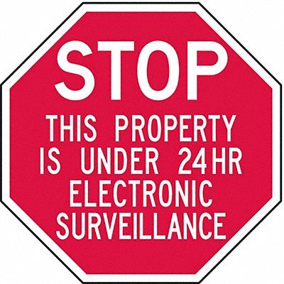 Informational Sign Octagon Number of Printed Sides 1 English Sign Format Other Format Sign Legend This Property Is Under 24 Hr Electronic Surveillance Sign Legend Background Color Red Sign Legend Style Text