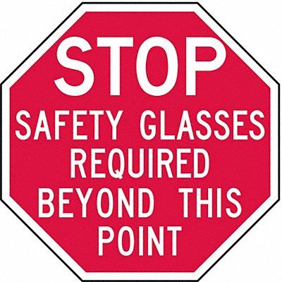 Reflective Eye Stop Sign Octagon Number of Printed Sides 1 English Sign Format Other Format Sign Legend Safety Glasses Required Beyond This Point Sign Legend Background Color Red Sign Legend Style Text
