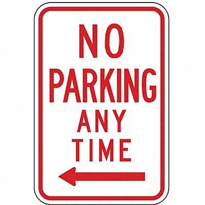 No Parking Any Time Parking Sign Height 18 in Width 12 in Sign Material Aluminum Sign Mounting Style Mounting Holes Printed Language English Sign Shape Vertical Rectangle