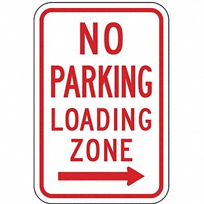 No Parking Loading Zone Right Arrow Parking Sign Height 18 in Width 12 in Sign Material Aluminum Sign Mounting Style Mounting Holes Printed Language English Sign Shape Vertical Rectangle