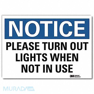 Notice Sign Horizontal Rectangle Number of Printed Sides 1 English Sign Format Traditional OSHA Sign Legend Please Turn Out Lights When Not In Use Sign Legend Background Color White Sign Legend Style Text
