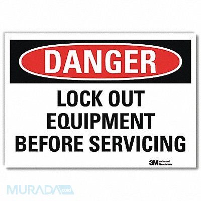 Danger Sign Vertical Rectangle Number of Printed Sides 1 English Sign Format Traditional OSHA Sign Legend Lock Out Equipment Before Servicing Sign Legend Background Color White Sign Legend Style Text