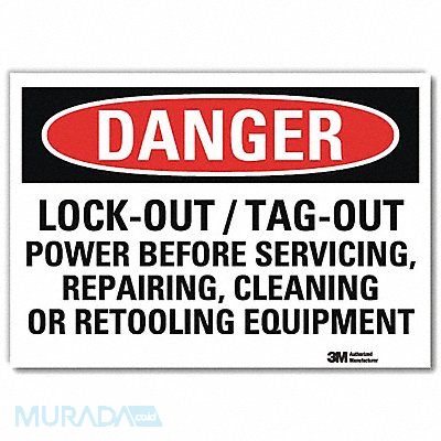 Danger Sign Horizontal Rectangle Number of Printed Sides 1 English Sign Format Traditional OSHA Sign Legend Lock-Out/Tag-Out Power Before Servicing Repairing Cleaning Or Retooling Equipment Sign Legend Background Color White Sign Legend Style Text