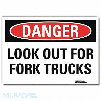 Danger Sign Horizontal Rectangle Number of Printed Sides 1 English Sign Format Traditional OSHA Sign Legend Look Out For Fork Trucks Sign Legend Background Color White Sign Legend Style Text