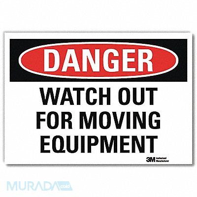 Danger Sign Horizontal Rectangle Number of Printed Sides 1 English Sign Format Traditional OSHA Sign Legend Watch Out For Moving Equipment Sign Legend Background Color White Sign Legend Style Text
