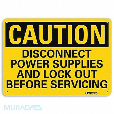 Caution Sign Vertical Rectangle Number of Printed Sides 1 English Sign Format Traditional OSHA Sign Legend Disconnect Power Supplies And Lock Out Before Servicing Sign Legend Background Color Yellow Sign Legend Style Text