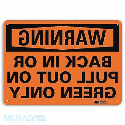Warning Sign Horizontal Rectangle Number of Printed Sides 1 English Sign Format Traditional OSHA Sign Legend Back In Or Pull Out On Green Only (Mirrored Image) Sign Legend Background Color Orange Sign Legend Style Text