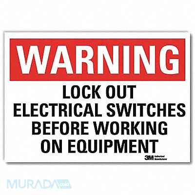Warning Sign Horizontal Rectangle Number of Printed Sides 1 English Sign Format Traditional OSHA Sign Legend Lock Out Electrical Switches Before Working On Equipment Sign Legend Background Color White Sign Legend Style Text
