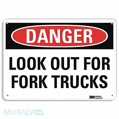Danger Sign Horizontal Rectangle Number of Printed Sides 1 English Sign Format Traditional OSHA Sign Legend Look Out For Fork Trucks Sign Legend Background Color White Sign Legend Style Text