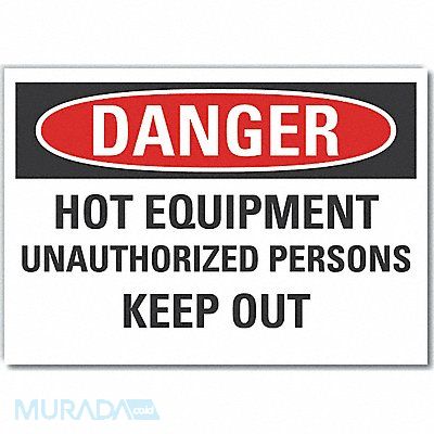 Danger Sign Vertical Rectangle Number of Printed Sides 1 English Sign Format Traditional OSHA Sign Legend Hot Equipment Unauthorized Persons Keep Out Sign Legend Background Color White Sign Legend Style Text