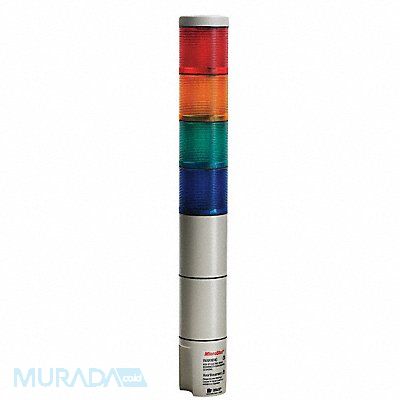Tower Light Mounting Style Pipe Surface Number of Lights 4 Tower Light Color Amber Blue Clear Green Red Light Modes Steady Lighting Technology Incandescent Sounder Included No Diameter 55 mm Overall Height 16 5/8 in Voltage 120V AC NEMA Rating IP65 NEMA 4X 75 Flashes per Minute Lamp Life 7 000 hr Housing Material Polycarbonate Lens Design Cylinder Lens Material Polycarbonate Operating Temp 34 Degrees to 104 Degrees F Standards UL Listed CSA Certified Current Drawn 0.2A