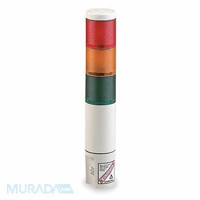 Tower Light Mounting Style Pipe Surface Number of Lights 3 Tower Light Color Amber Green Red Light Modes Steady Lighting Technology Incandescent Sounder Included No Diameter 55 mm Overall Height 12 1/2 in Voltage 120V AC NEMA Rating IP65 NEMA 4X 0 Flashes per Minute Lamp Life 7 000 hr Housing Material Polycarbonate Lens Design Cylinder Lens Material Polycarbonate Operating Temp 32 Degrees to 104 Degrees F Standards UL Listed CSA Certified Current Drawn 0.6A Watts 5.6 W