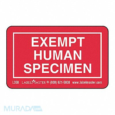 Exempt Specimen Label Human Package Quantity 1000 Color Red Height 1 3/8 in Preprinted Text Exempt Human Specimen Subject Matter Used For Shipping Human Medical Specimens Tag Material Semi-Gloss Paper Tag Shape Rolls Width 2 1/4 in Standards Cancer Warning Chemical Info Benzophenone Prop 65 Warning WARNING Cancer and Reproductive Reproductive Harm Chemical Toluene Package Quantity 1000