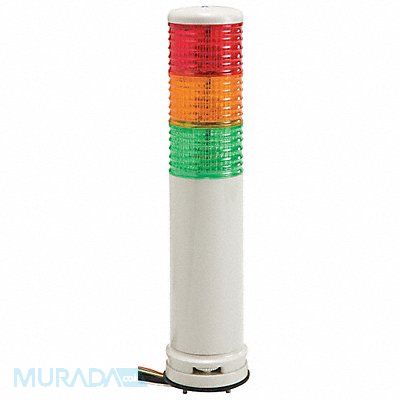 Tower Light Mounting Style Base Number of Lights 3 Tower Light Color Green Orange Red Light Modes Flashing Steady Sound Modes Intermittent Steady Lighting Technology LED Sounder Included Yes Diameter 60 mm Overall Height 12 9/32 in Voltage 100 to 240V AC NEMA Rating IP54 60 Flashes per Minute Lamp Life 100 000 hr Housing Material ABS or PBT + ABS Lens Design Cylinder Lens Material Polycarbonate Sound Level 70 to 85dB Cord Length 29 9/16 in