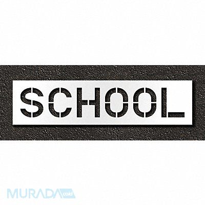 Pavement Stencil Character Type Message Duty Light FAA AC 150/5340-1K Compliant No Font Highway Gothic Included Characters Messages and Symbols School Includes School Individual Character Height Not Applicable Individual Character Width Not Applicable Interlocking No Interlocking Orientation Not Applicable Material Polyethylene Message or Symbol Height 12 in Message or Symbol Width 64 in Number of Pieces 1 Overall Stencil Height 18 in Overall Stencil Thickness 0.06 in