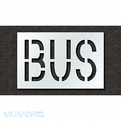 Pavement Stencil Character Type Message Duty Light FAA AC 150/5340-1K Compliant No Font Highway Gothic Included Characters Messages and Symbols Bus Includes Bus Individual Character Height Not Applicable Individual Character Width Not Applicable Interlocking No Interlocking Orientation Not Applicable Material Polyethylene Message or Symbol Height 18 in Message or Symbol Width 31 in Number of Pieces 1 Overall Stencil Height 24 in Overall Stencil Thickness 0.06 in