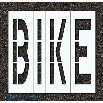 Pavement Stencil Character Type Message Duty Light FAA AC 150/5340-1K Compliant No Font Highway Gothic Included Characters Messages and Symbols Bike Includes Bike Individual Character Height Not Applicable Individual Character Width Not Applicable Interlocking No Interlocking Orientation Not Applicable Material Polyethylene Message or Symbol Height 48 in Message or Symbol Width 57 in Number of Pieces 4 Overall Stencil Height 60 in Overall Stencil Thickness 0.063 in