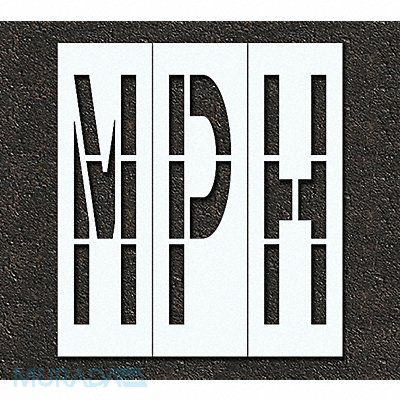 Pavement Stencil Character Type Message Duty Light FAA AC 150/5340-1K Compliant Yes Font Highway Gothic Included Characters Messages and Symbols Mph Includes Mph Individual Character Height Not Applicable Individual Character Width Not Applicable Interlocking No Interlocking Orientation Not Applicable Material Polyethylene Message or Symbol Height 48 in Message or Symbol Width 48 in MUTCD Compliant No Number of Pieces 3 Overall Stencil Height 60 in