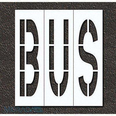 Pavement Stencil Character Type Message Duty Light FAA AC 150/5340-1K Compliant No Font Highway Gothic Included Characters Messages and Symbols Bus Includes Bus Individual Character Height Not Applicable Individual Character Width Not Applicable Interlocking No Interlocking Orientation Not Applicable Material Polyethylene Message or Symbol Height 96 in Message or Symbol Width 96 in MUTCD Compliant Yes Number of Pieces 3 Overall Stencil Height 104 in