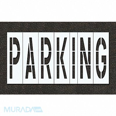 Pavement Stencil Character Type Message Duty Light FAA AC 150/5340-1K Compliant No Font Highway Gothic Included Characters Messages and Symbols Parking Includes Parking Individual Character Height Not Applicable Individual Character Width Not Applicable Interlocking No Interlocking Orientation Not Applicable Material Polyethylene Message or Symbol Height 96 in Message or Symbol Width 222 in MUTCD Compliant Yes Number of Pieces 7 Overall Stencil Height 104 in