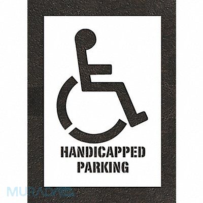 Pavement Stencil Character Type Symbol Duty Light FAA AC 150/5340-1K Compliant No Font Not Applicable Included Characters Messages and Symbols Handicap Symbol Includes Handicap Symbol Individual Character Height Not Applicable Individual Character Width Not Applicable Interlocking No Interlocking Orientation Not Applicable Material Low Density Polyethylene (LDPE) Message or Symbol Height 48 in Message or Symbol Width 31 in Number of Pieces 1 Overall Stencil Height 56 in