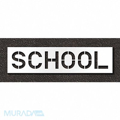 Pavement Stencil Character Type Message Duty Heavy FAA AC 150/5340-1K Compliant No Font Highway Gothic Included Characters Messages and Symbols School Includes School Individual Character Height Not Applicable Individual Character Width Not Applicable Interlocking No Interlocking Orientation Not Applicable Material Polyethylene Message or Symbol Height 12 in Message or Symbol Width 64 in Number of Pieces 1 Overall Stencil Height 18 in Overall Stencil Thickness 0.125 in