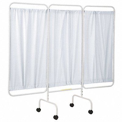 Privacy Screen Number of Panels 3 Screen Color White Screen Material Flame Retardant Vinyl Overall Height 69 in Frame Material Powder Coated Steel Overall Width 81 in Panel Height 55 in Panel Width 27 in Frame Color White
