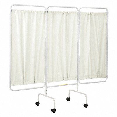Privacy Screen Number of Panels 3 Screen Color Beige Screen Material Flame Retardant Antimicrobial Vinyl Overall Height 69 in Frame Material Powder Coated Steel Overall Width 81 in Panel Height 55 in Panel Width 27 in Frame Color White