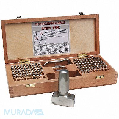 Marking Kit Character Height 1/8 in Character Type Set Letter/Number/Symbol Set Characters Included 0 to 9 A to Z Ampersand Blank Space Comma Dash (-) Period (.) Slash (/) Duty Moderate For Maximum Surface Hardness 50 on A Rockwell C Scale For Shank Diameter 1/4 in Holder Length 5 in Holder Shank Size 2 1/2 in Holder Width 2 1/2 in Impression Character Style Round Full