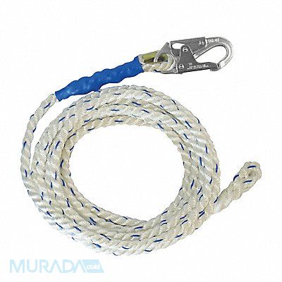 Vertical Lifeline Color White Weight Capacity 310 lb Standards ANSI Z359.15-2014 CSA Z259.2.5-2017 OSHA 1926.502 and 1910.66 Rope Lifeline Component Rope Lifeline For Use With PFAS or Restraint System Hardware Material Steel Workers per System 1 Tensile Strength 5 000 lb Lifeline Length 25 ft Lifeline Material Polyester Includes Snap Hook Splice-Protecting Shrink Tube Steel Thimble Anchorage End Connection Snap Hook Rope Diameter 5/8 in Rope End Style Braided Rope