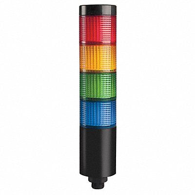 Tower Light Mounting Style Direct Number of Lights 4 Tower Light Color Amber Blue Green Red Light Modes Flashing Steady Lighting Technology LED Sounder Included No Diameter 56 mm Overall Height 9 15/19 in Voltage 24V AC/DC NEMA Rating IP65 80 Flashes per Minute Lamp Life 30 000 hr Housing Material ABS Lens Design Cylinder Lens Material Polycarbonate Cord Length 20 in Operating Temp -15 Degrees to 40 Degrees C Standards UL CSA Current Drawn 0.144 Watts 3.39 W