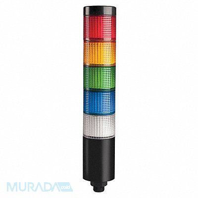Tower Light Mounting Style Direct Number of Lights 5 Tower Light Color Amber Blue Clear Green Red Light Modes Flashing Steady Lighting Technology LED Sounder Included No Diameter 56 mm Overall Height 11 9/25 in Voltage 90 to 240V AC NEMA Rating IP65 80 Flashes per Minute Lamp Life 30 000 hr Housing Material ABS Lens Design Cylinder Lens Material Polycarbonate Cord Length 20 in Operating Temp -15 Degrees to 40 Degrees C Standards UL CSA Current Drawn 0.072 to 0.097