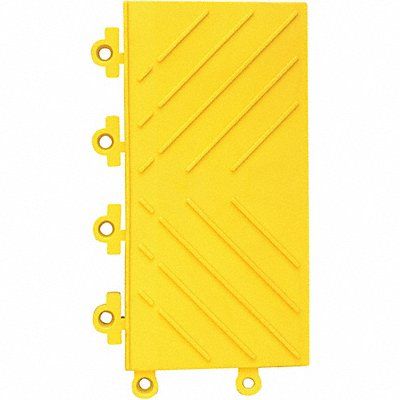 Ramp Edge Anti-Slip Backing No Anti-Slip Surface Yes Antifatigue Material Yes DOC FF1-70 Rating Yes NFSI High Traction Certified No Recycled Content No Recycled Content Critical Radiant Flux Class Rating Class 1 NSF/ANSI 52 No Antimicrobial No Autoclavable No Backing Characteristics Channels Surface Texture Raised Pattern USDA Certified No X-Ray Detectable No Washdown Safe Yes Color Yellow Connection Style Peg and Hole Durometer Rating 85 Shore A Edge Gender Male