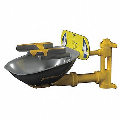 Plumbed Eyewash Activation Push Plate Barrier Free Yes Bowl Style Uncovered Color Yellow Coverage Eyes and Face Depth 13 1/4 in Height 14 5/8 in Width 15 1/2 in Environment General Purpose Eyewash Bowl Material Stainless Steel Hazardous Location Rating Not Rated Includes Inspection Tag Universal Identification Sign Includes Foot Pedal Yes Inlet Pipe Gender Female Inlet Pipe Size 1/2 in Inlet Pipe Thread Type NPT Pipe Material Galvanized Steel Series Halo Mount Type Wall