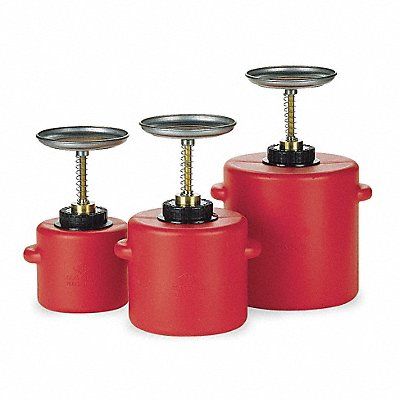 Plunger Can Can Capacity 0.25 gal Can Material Polyethylene Dasher Plate Dia 5 1/4 in Can Color Red Plunger Material Brass Height 9 3/4 in Finish - Outside Dia 5 1/4 in Standards FM Approved OSHA